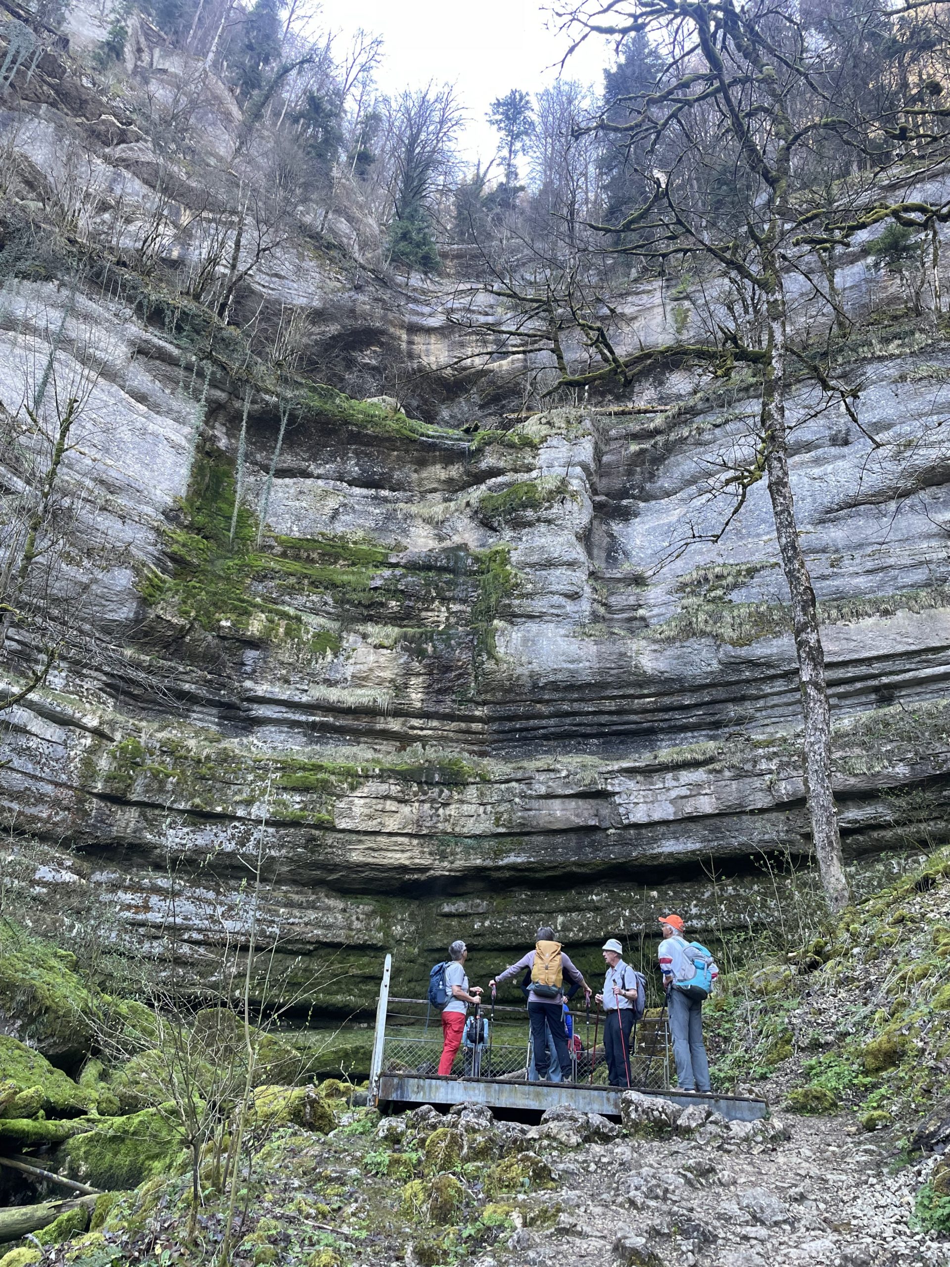 Une fois le Doubs franchi à Biaufond, Seniors et Tamalous se sont retrouvés à Mont-de-Laval, sur la place du village, pour un bon petit déjeuner offert par les organisatrices. Après cela, nous autres Tamalous, sommes descendus en voiture au fond du Cirque de Consolation. Du monastère, nous sommes partis à pied pour découvrir la source du Dessoubre, le Belvédère de Ste-Catherine et la cascade du Lançot. Tout le monde s’est retrouvé ensuite devant le monastère pour un pique-nique en commun. Après cela, Les Tamalous sont montés en voiture à la Roche du Prêtre pour avoir une vue complète et magnifique sur le Cirque de Consolation. Au lieu de rentrer directement, Georges-André a proposé d’aller boire un verre dans sa résidence secondaire près de Russey. Vers 16 heures, ce fut le retour par Villers-le-Lac pour éviter le retour en nombre des travailleurs frontaliers dans les Côtes du Doubs