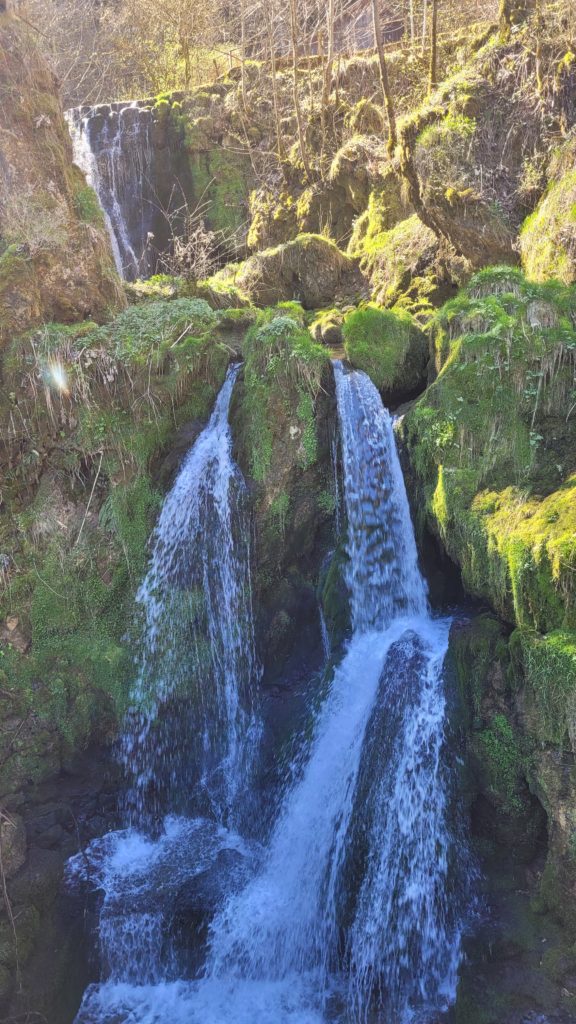 Les choses sérieuses commencent, nous longeons le bord de la rivière, puis il faut remonter jusqu’au point de départ, le dénivelé est d’environ 635 m. Le sentier du Pissoux nous enchante par sa végétation luxuriante et sauvage, ses arbres recouverts de mousse, et le murmure de l’eau qui coule à nos pieds. Notre rythme de marche est régulier et d’une bonne cadence, peu de pause, l’équipe est en forme !!!!!!!