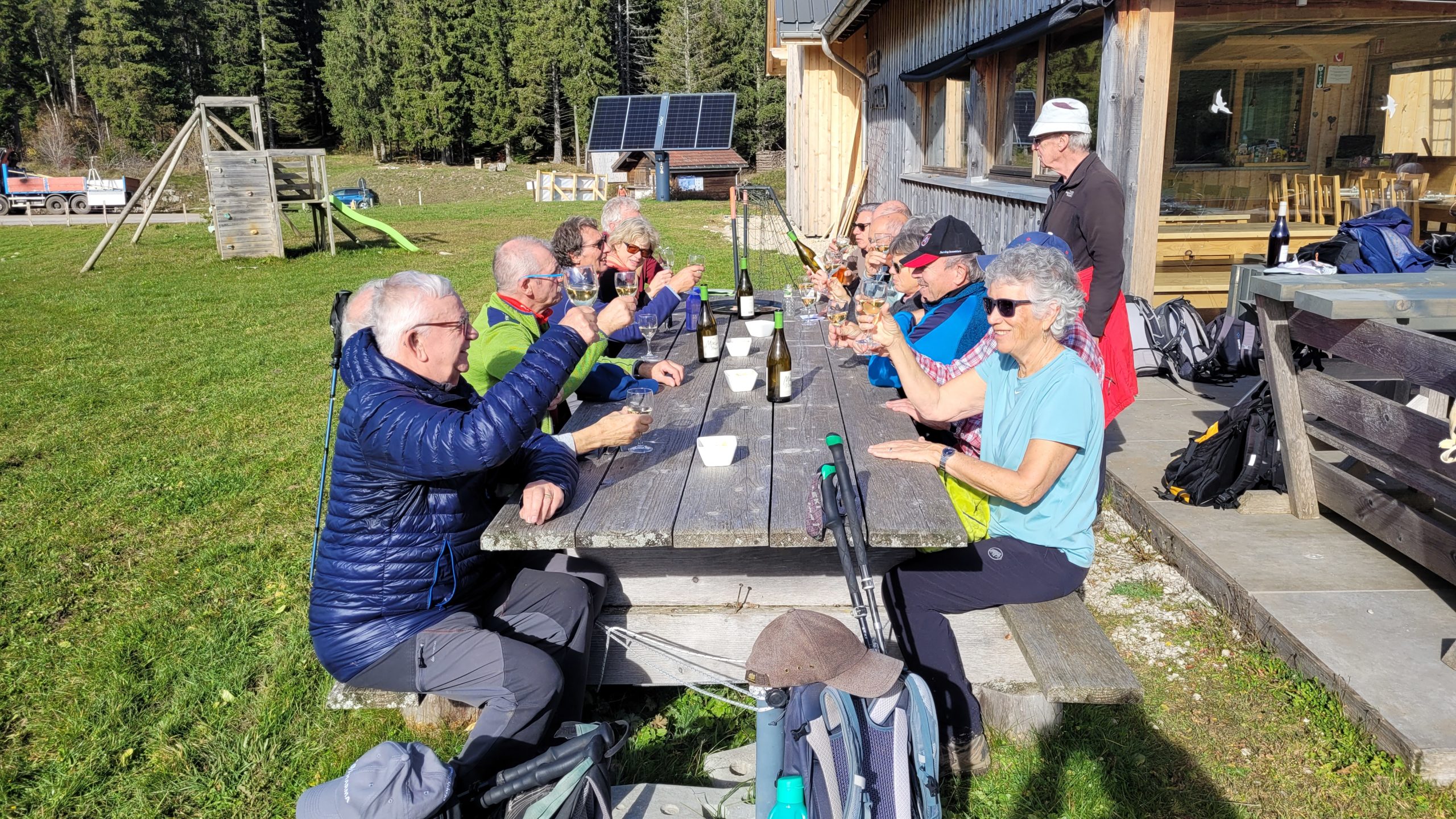 Nous rejoignons, aux Granges Raguin, nos 5 Tamalous attablés en terrasse pour l’apéro. Après un repas typiquement local, dessert et café, vient le temps de l’addition ou nous apprenons que 4 participants (anniversaires et coordinateurs) offrent les boissons (merci à eux).