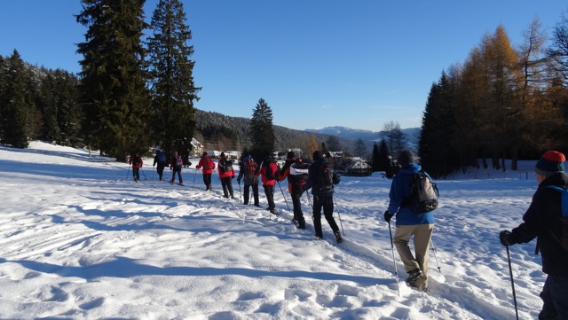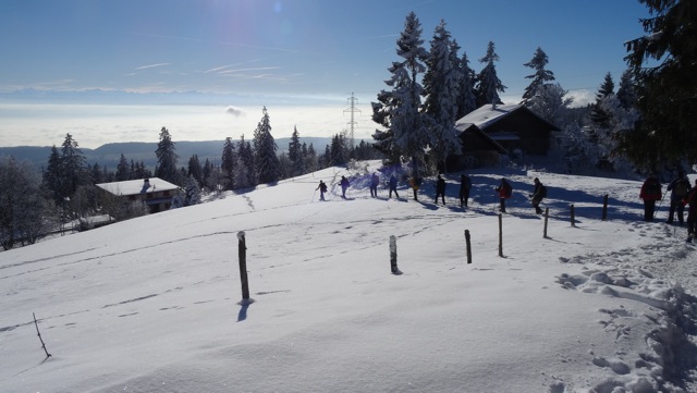 La traditionnelle rencontre et balade de l’année. Une équipe de cuisine aux fourneaux, plus une équipe traiteur (entrée et dessert) nous ont concocté un repas complet apprécié de tous. Les randonneurs eux, se déplaçaient en train jusqu’aux Hauts-Geneveys. Puis, raquettes aux pieds nous entamons la montée par La Baume, La Grognerie, La Vue des Alpes et le Sentier de La Crête direction Les Névas – le chalet du Ski-Club de La Chaux-de-Fonds. D’autres membres arriveront directement depuis Tête de Ran. L’après-midi, continuation sur La Chaux-de-Fonds par le Crêt-Meuron, La Roche aux Crocs, La Corbatière et Le Mont-Jaques. Météo: ciel bleu toute la journée.