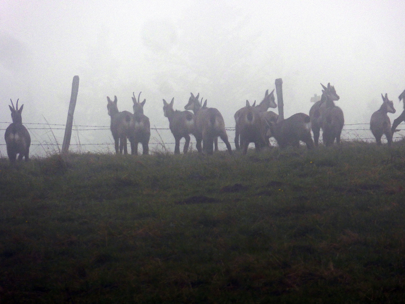 Les 17 Seniors 1/2 , partant de La Baronne, ont immédiatement pris de la hauteur pour être sur la crête. Et dans le brouillard et vent dans le dos, en chemin, avant d’arriver à la Roche Devant, un troupeau de chamois se détachait dans la brume. Depuis le point de vue de la Chaille, il a fallu lever un peu les nuages pour tenter d’apercevoir le lac, mais en arrivant au point de vue du Lessy, le brouillard s’est dissipé, offrant une superbe vue sur le Creux-du-Van, le Val-de-Travers et les crêtes jurassiennes. De retour au restaurant du Lessy, nous avons retrouvé 2 TMF et les Tamalous que nous avions croisés, redescendant du point de vue.