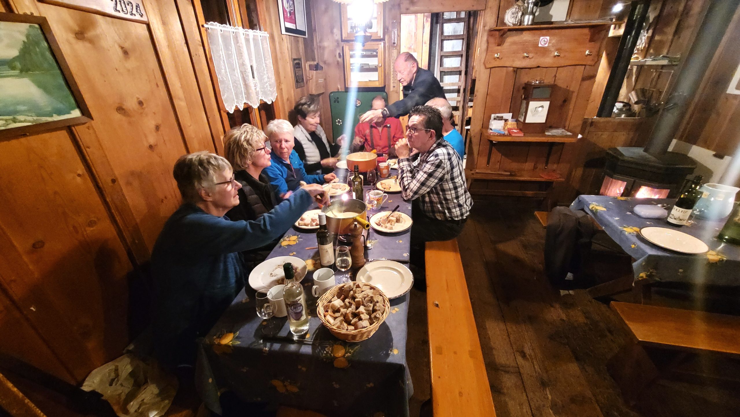 Dernière activité de l’année, la traditionnelle moitié-moitié. Un p’tit coin sympa sous les sapins, le Chalet Aster à Pouillerel.